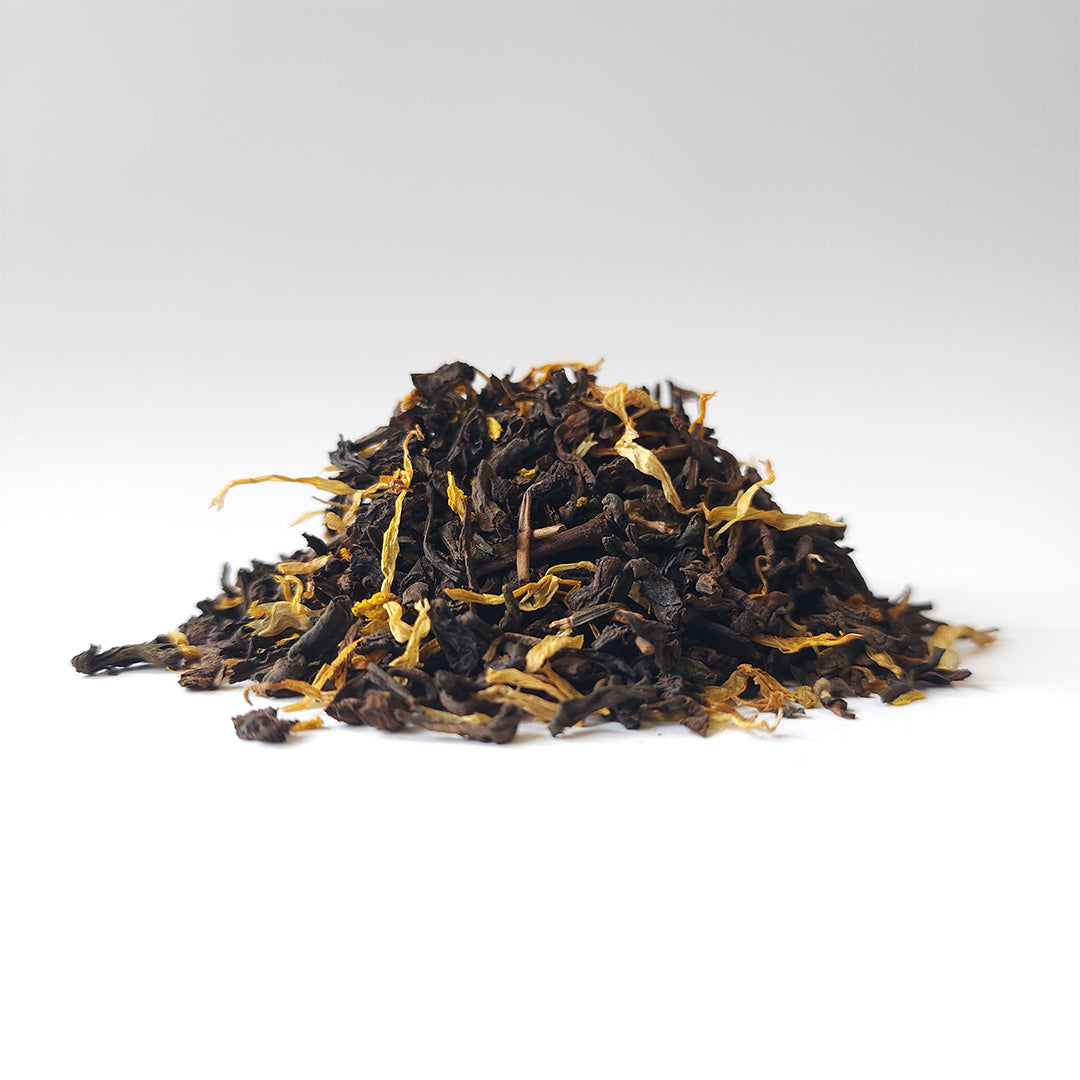 Looking for a pu-erh with a sweet side? This decadent blend of rich ripe pu-erh and crème brûlée flavour brings dessert vibes to every steep. It starts with notes of creamy vanilla and caramelized sugar, then gradually reveals the earthy depth of aged pu-erh—think forest floor without the funk. Each infusion melts away a bit of sweetness, pulling you deeper into the classic, cozy richness of a well-balanced ripe tea.